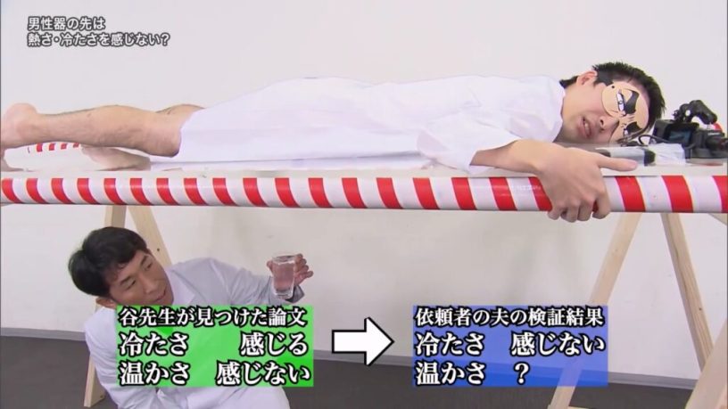 為了驗證這一點,節目進行了實際的實驗。首先,使用5度C的冷水進行測試,小村和央表示能感覺到有東西碰觸到,但難以確定是冷還是熱。然而,隨後的兩位受試者分別確認了是冷水。接著,換成50度C的熱水進行測試,小村和央表示能感覺到有東西,但難以區分冷熱,而其他兩位受試者則表示完全感受不到熱度。