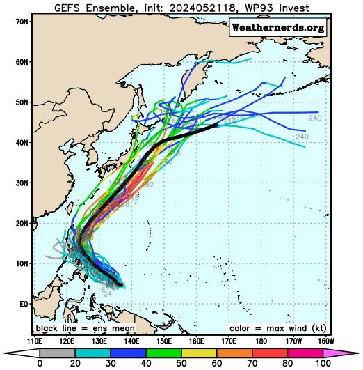 氣象專家吳德榮指出,目前的預測路徑顯示,颱風可能在未來的10天內形成,並在5月27日至5月28日期間最接近台灣。台灣大學大氣科學系博士林得恩在其臉書專頁「林老師氣象站」中表示,初步研判,颱風增強的可能性較高,並可能在台灣附近造成一定影響。