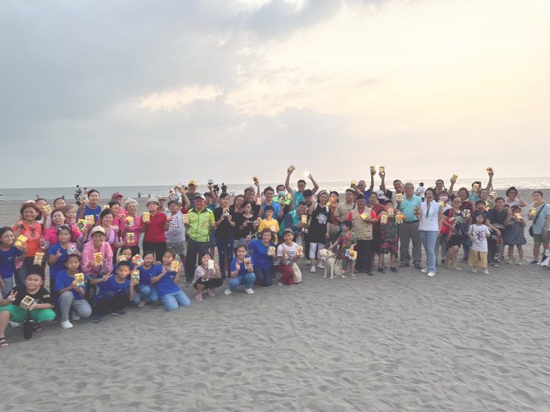 在這樣的背景下,社團法人中華海洋觀光推廣與農業特色振興協會(以下簡稱「海洋協會」)以「喜樹海濱400願望點夢」為主題,於年初向海洋委員會申請地方創生補助計畫,並順利脫穎而出獲得資金支持。該專案於6月啟動,透過社區訪談與創作,凝聚地方共識,進一步推動民眾對這片海濱的了解與熱愛。9月28日,正值蚵棚出海前夕,海洋協會理事長侯翠玲與南區多家協辦機構及社團,於喜樹海濱沙灘舉辦了一場壯觀的願望點燈活動。當天活動在黃昏時分進行,參與者手持由自己或他人彩繪的海濱願望桌燈,朝向天際許下美好願望。在場人群在沙灘上排列出「400」字樣,並以空拍機記錄下這美麗壯觀的場景,藉此將南區的海濱美景廣傳出去,吸引更多人前來了解這片美麗的海灘及在地特色。